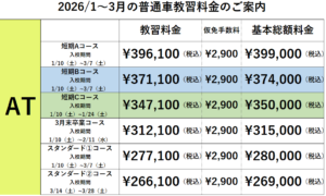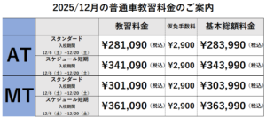 ・マイペースで免許取得を目指す方で12月入校希望の場合は『スタンダードコース』で入校をするのがおススメ。